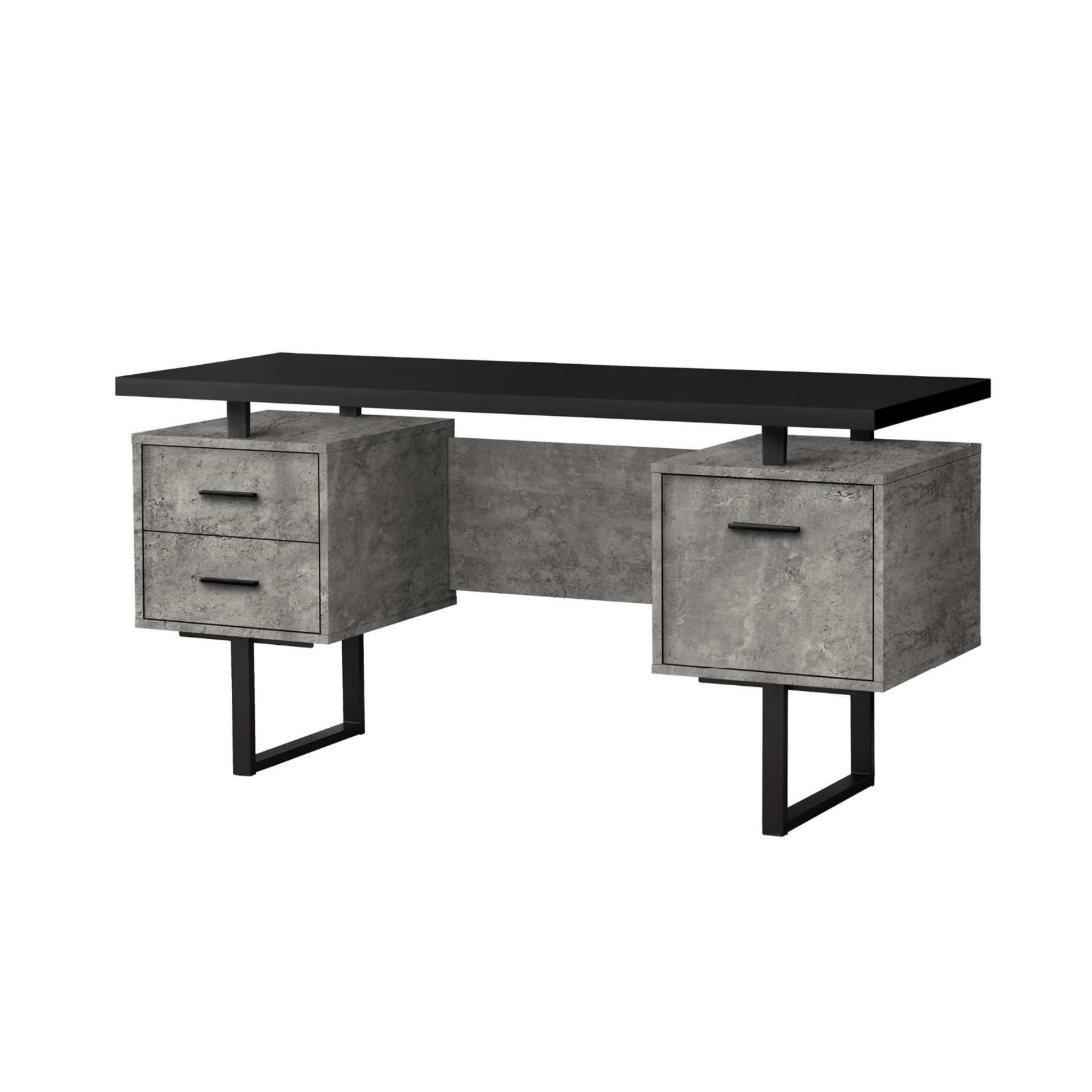 Revêtu d’un stratifié noir et béton gris sur tous les côtés, ce bureau comprend deux tiroirs supérieurs pour vos accessoires de bureau et un tiroir de classement muni de barres métalliques pour dossiers de format standard ou légal. Les blocs-tiroirs sont réversibles et peuvent être installés à gauche ou à droite selon vos préférences.