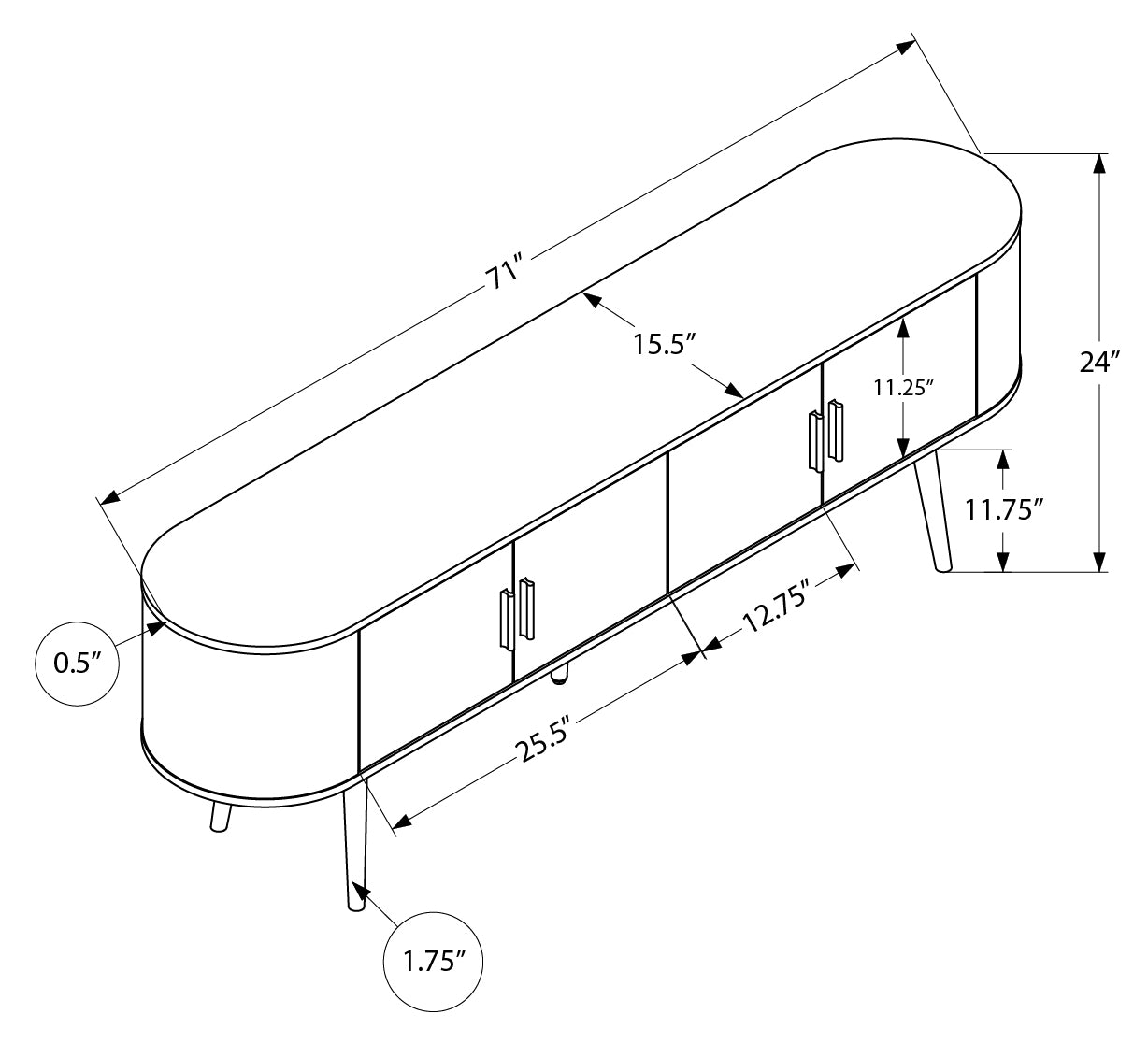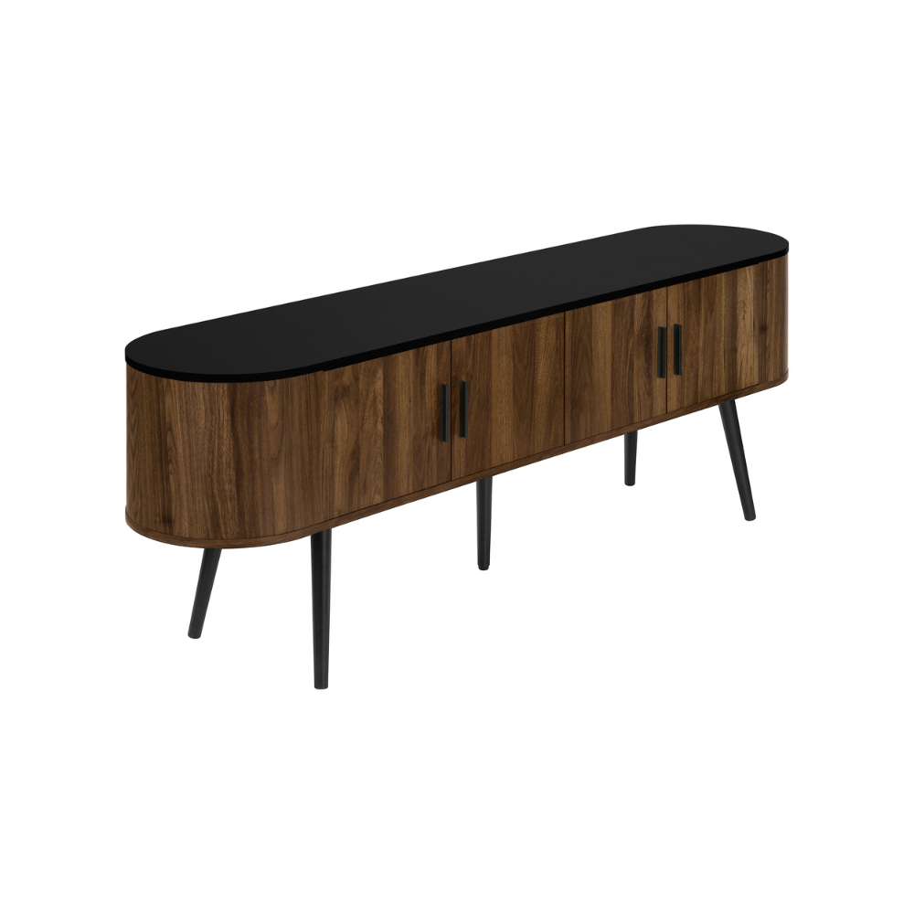 - Facile à assembler grâce aux instructions illustrées et à la quincaillerie incluse, cette console TV présente des côtés incurvés et des poignées élégantes en noir pour une touche mid-century, apportant un style à la mode à toute maison contemporaine.