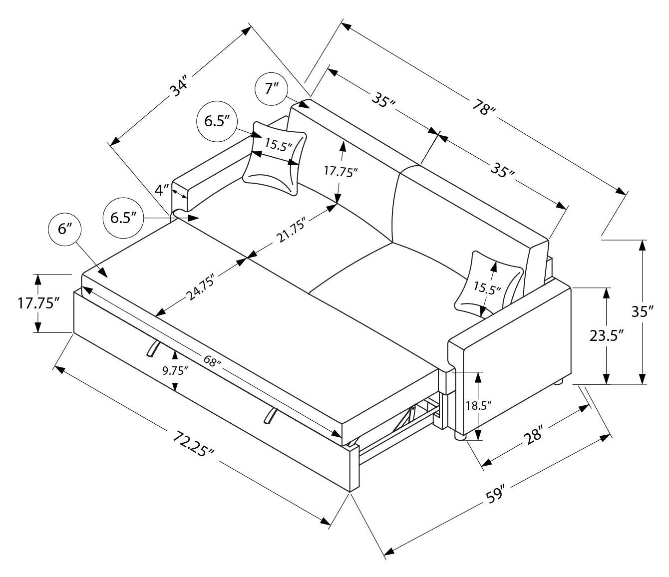 Sofa lit de 78" de Monarch - BREGO-31 - tissu beige pale (8224G31)