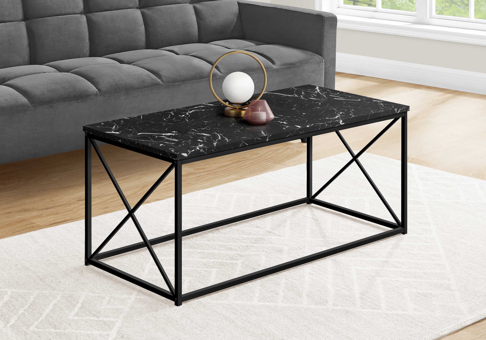 Table de salon en métal noir, marbre foncé - Monarch (I3783)
