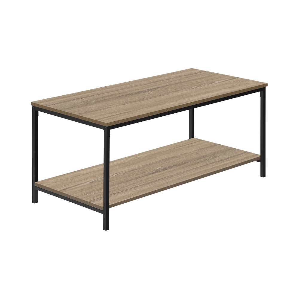 - Apportez style et fonctionnalité à votre maison avec cette table basse à deux niveaux, finie dans un élégant stratifié taupe foncé combiné à une base en métal noir.